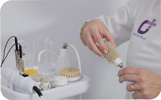 Σύστημα βουρτσών για ήπιο μηχανικό πίλινγκ του προσώπου, του σώματος και ευαίσθητου δέρματος χάρη σε 3 βούρτσες από φυσικές τρίχες κατσίκας, 1 μεγάλη βούρτσα με τρίχες, 1 βούρτσα με πέτρα πορόλιθου για τη μείωση του πάχους του σκλήρυνσης του δέρματος και 1 βούρτσα με σφουγγάρι για τον καθαρισμό πολύ ευαίσθητων περιοχών.
