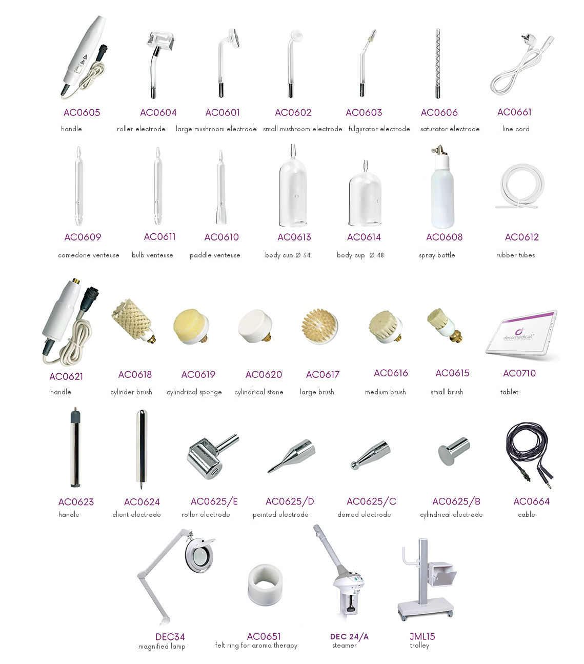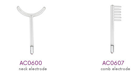 Υψίσυχνα, εξοπλισμένα με 6 γυάλινα ηλεκτρόδια που επιτρέπουν την εκτέλεση θεραπειών όχι μόνο προσώπου αλλά και σώματος, αξιοποιώντας πλήρως τις αρχές της Υψηλής Συχνότητας και τα αποτελέσματά τους.