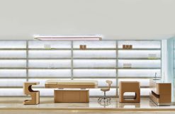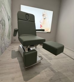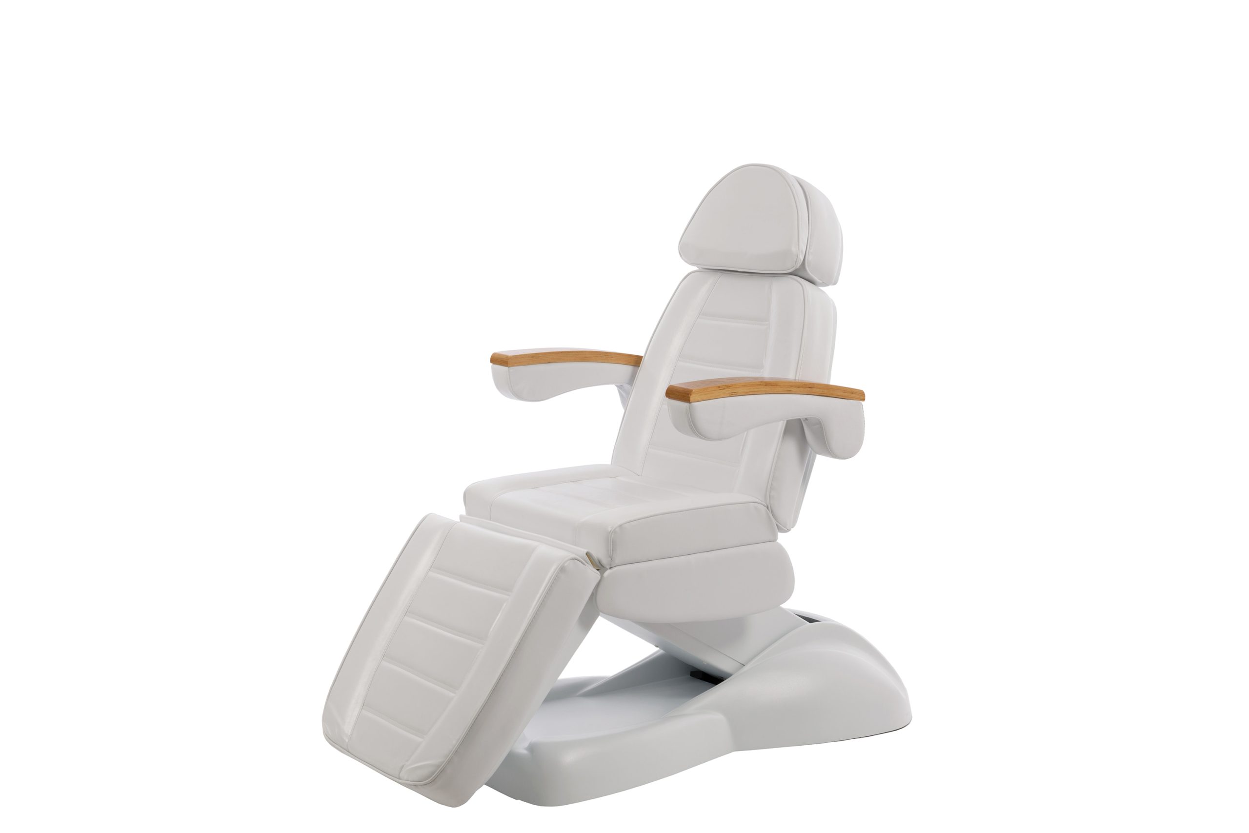 Η καρέκλα διατίθεται και με 4 μοτέρ που επιτρέπει τη μηχανοκίνητη ρύθμιση της κλίσης της καθίσματος. Επίσης, διαθέτει ανακλινόμενα υποβραχιόνια και ρυθμιζόμενο προσκέφαλο. Η επένδυση είναι πολυουρεθάνης, υψηλής ποιότητας, για εύκολο καθάρισμα. Περιλαμβάνεται η βάση για ρολό χαρτί.