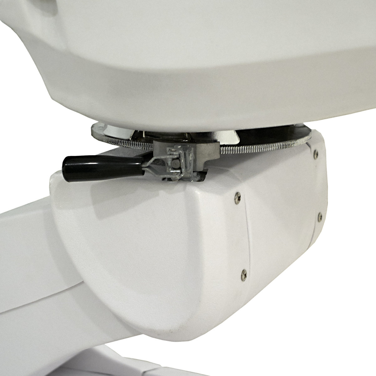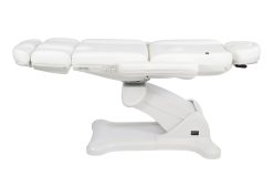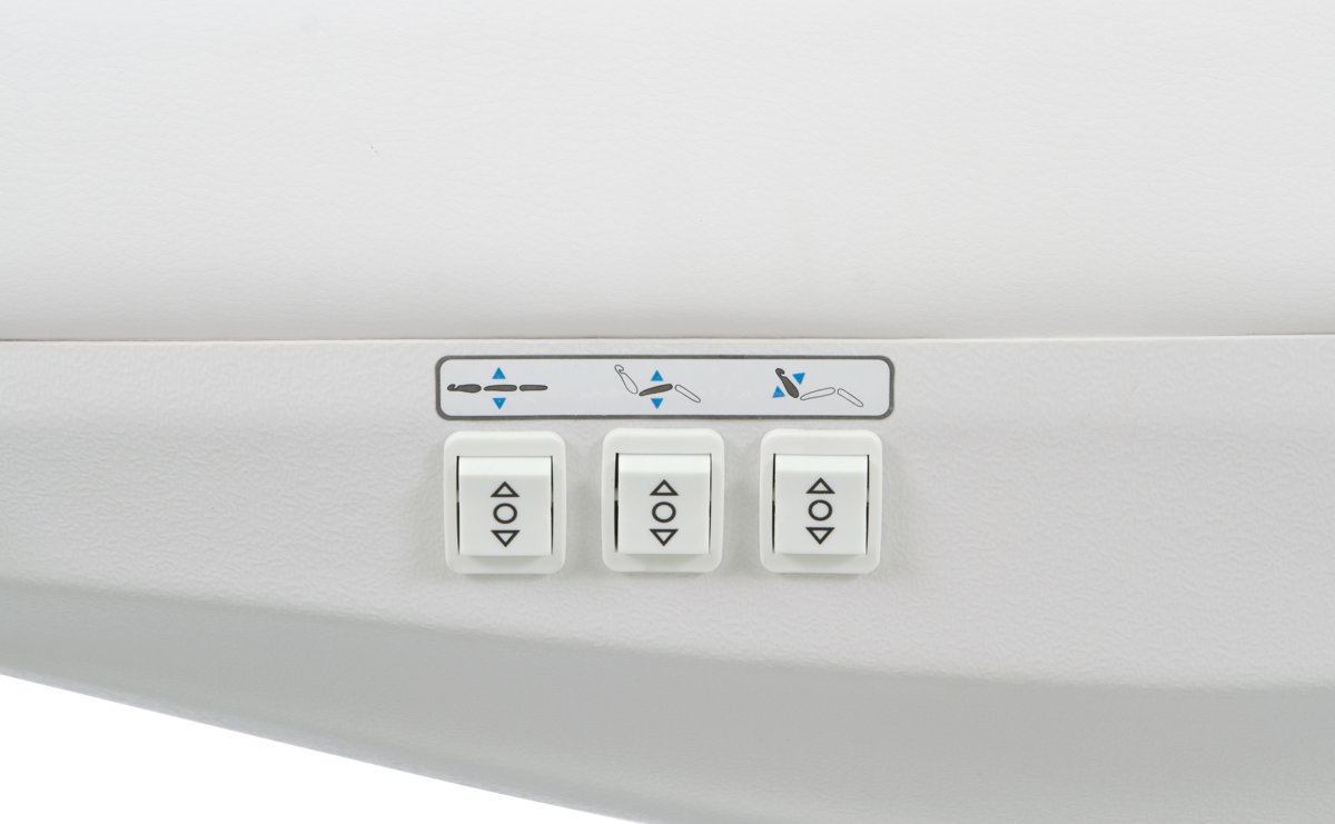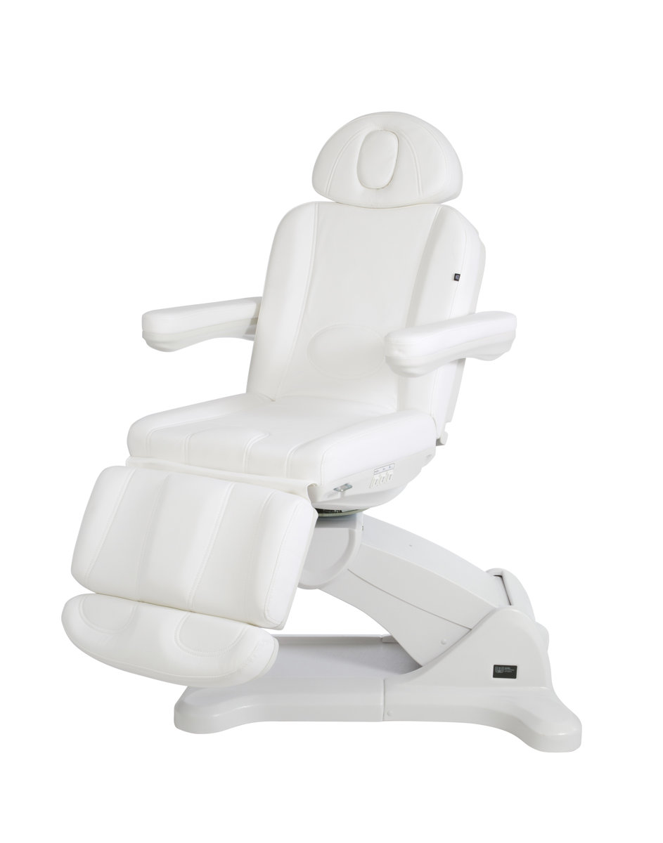 Ειδικά σχεδιασμένη για να καταλαμβάνει τον λιγότερο δυνατό χώρο εργασίας χάρη στην περιστροφή 240°. 3 μοτέρ ελέγχου ύψους, πλάτης και κλίση καθίσματος. Υποπόδιο ρυθμιζόμενο με αντλία ανελκυστήρα αερίου, αναπαυτικά μπράτσα και ρυθμιζόμενο προσκέφαλο. Διαθέσιμο επίσης μοντέλο 4-μοτέρ (Κωδ:2246.Β.Α26) που επιτρέπει την αυτόματη ρύθμιση της κίνησης του ύψους. Τα πάνελ κουμπιών που είναι ενσωματωμένα στην πλάτη του καθίσματος, το στήριγμα για τα πόδια και το κάθισμα επιτρέπουν τον πλήρη έλεγχο όλων των λειτουργιών από οποιοδήποτε σημείο της καρέκλας. Αυτή η έκδοση περιλαμβάνει τη λειτουργία RESET για να επαναφέρετε την καρέκλα στη μηδενική θέση. Λευκή PU ταπετσαρία υψηλής ποιότητας για εύκολο καθαρισμό.