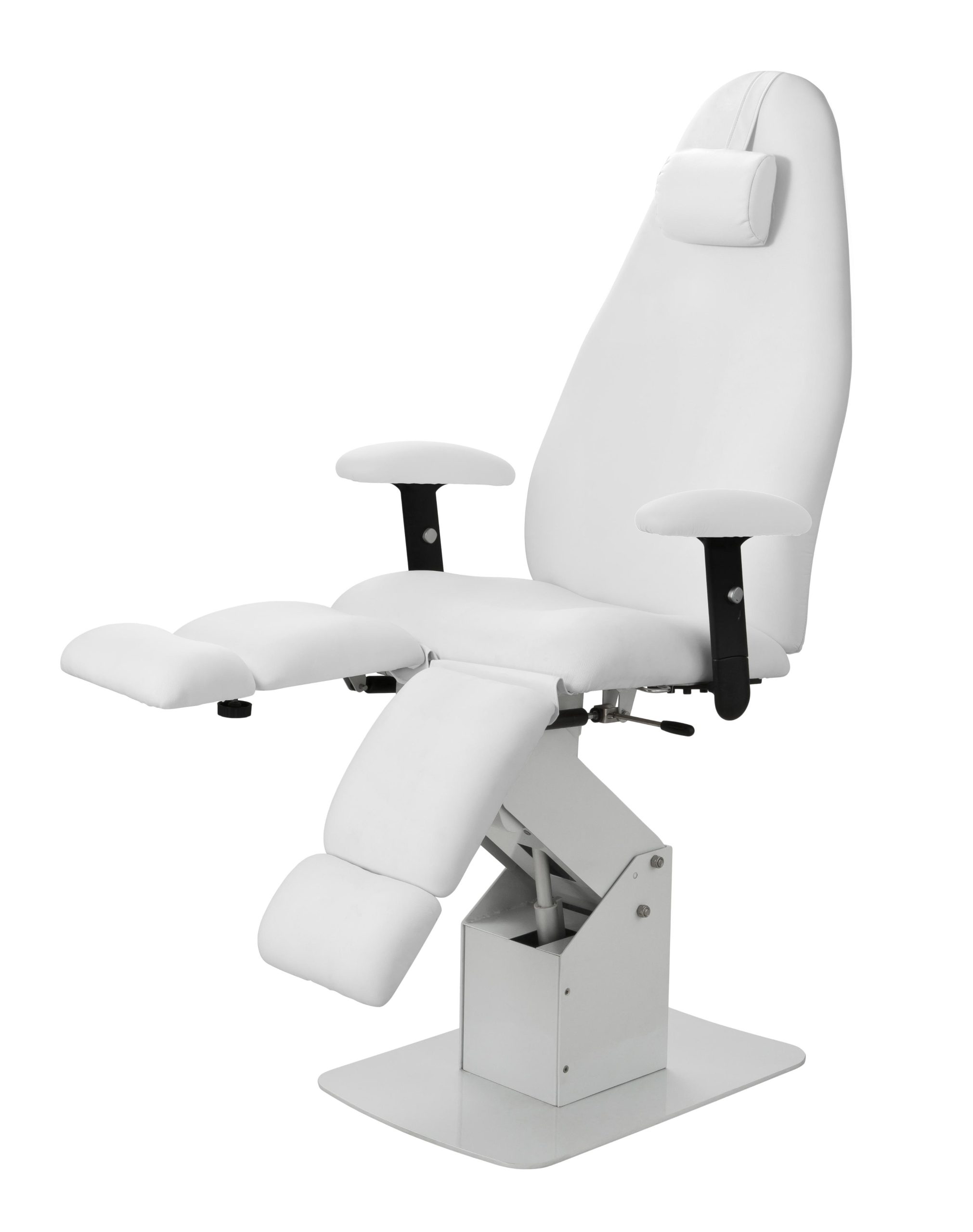 Η πλάτη και τα υποπόδια ρυθμίζονται ανεξάρτητα με υδραυλικό σύστημα (gas lift). Αφαιρούμενο μαξιλάρι κεφαλής. Υψηλής ποιότητας λευκή επένδυση PU χωρίς ραφές, που διευκολύνει τον καθαρισμό.