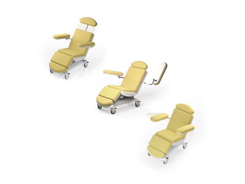 Η καρέκλα αυτή ενσωματώνει εργονομικά χαρακτηριστικά που ενισχύουν την άνεση του ασθενούς ενώ παράλληλα διευκολύνει την εργασία του προσωπικού, κάνοντάς την ιδανική για ιατρικές διαδικασίες με τις απαιτήσεις που προκύπτουν από τις συνθήκες της αιμοδιάλυσης και αιμοδοσίας.
