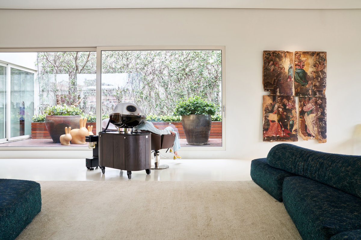 Επάνω επιφάνεια από αδιαφανή ρητίνη Geacril, διαθέσιμη σε λευκό ή μαύρο χρώμα.