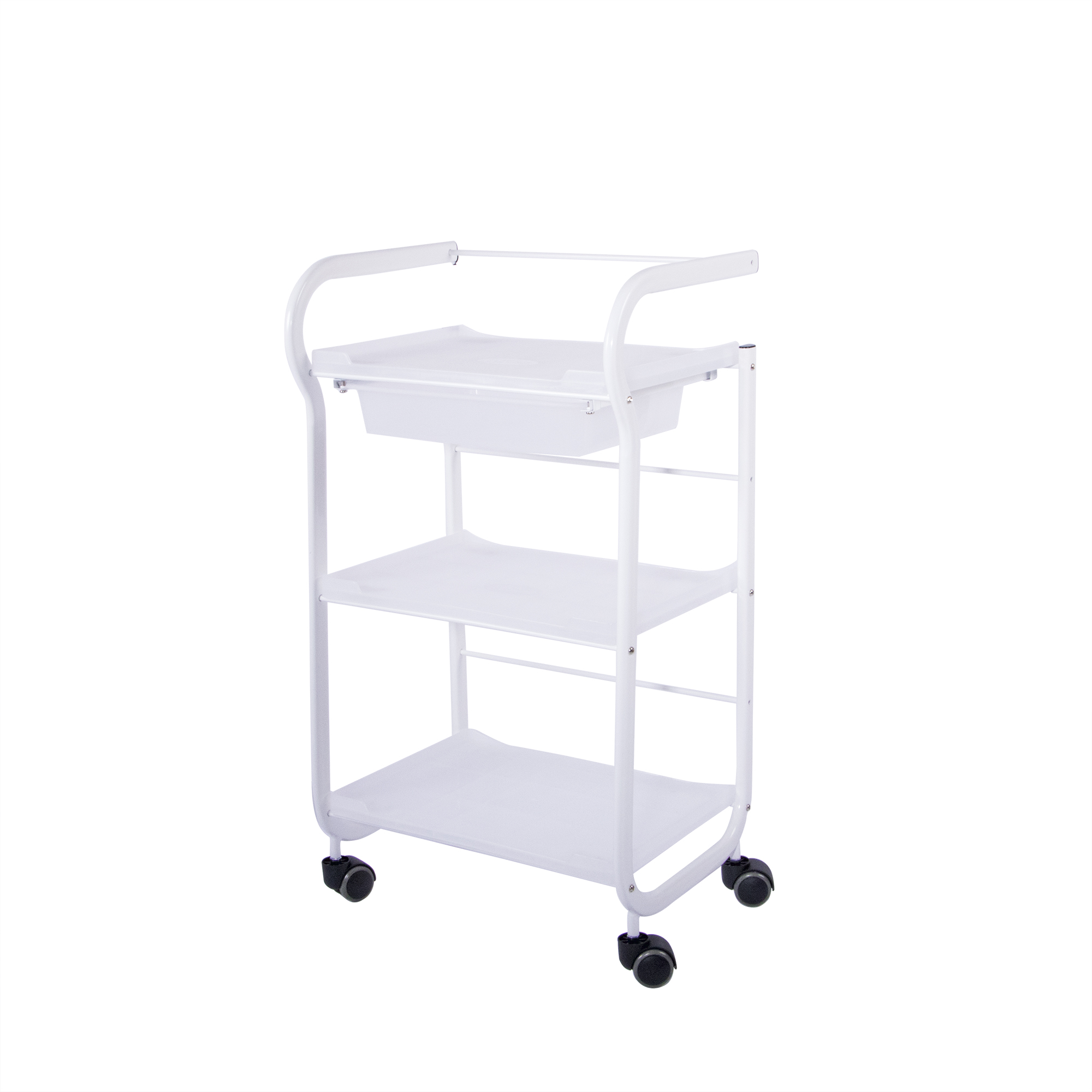 Μεταλλικό λευκό τρόλεϊ αισθητικής με μίνιμαλ σχεδιασμό.