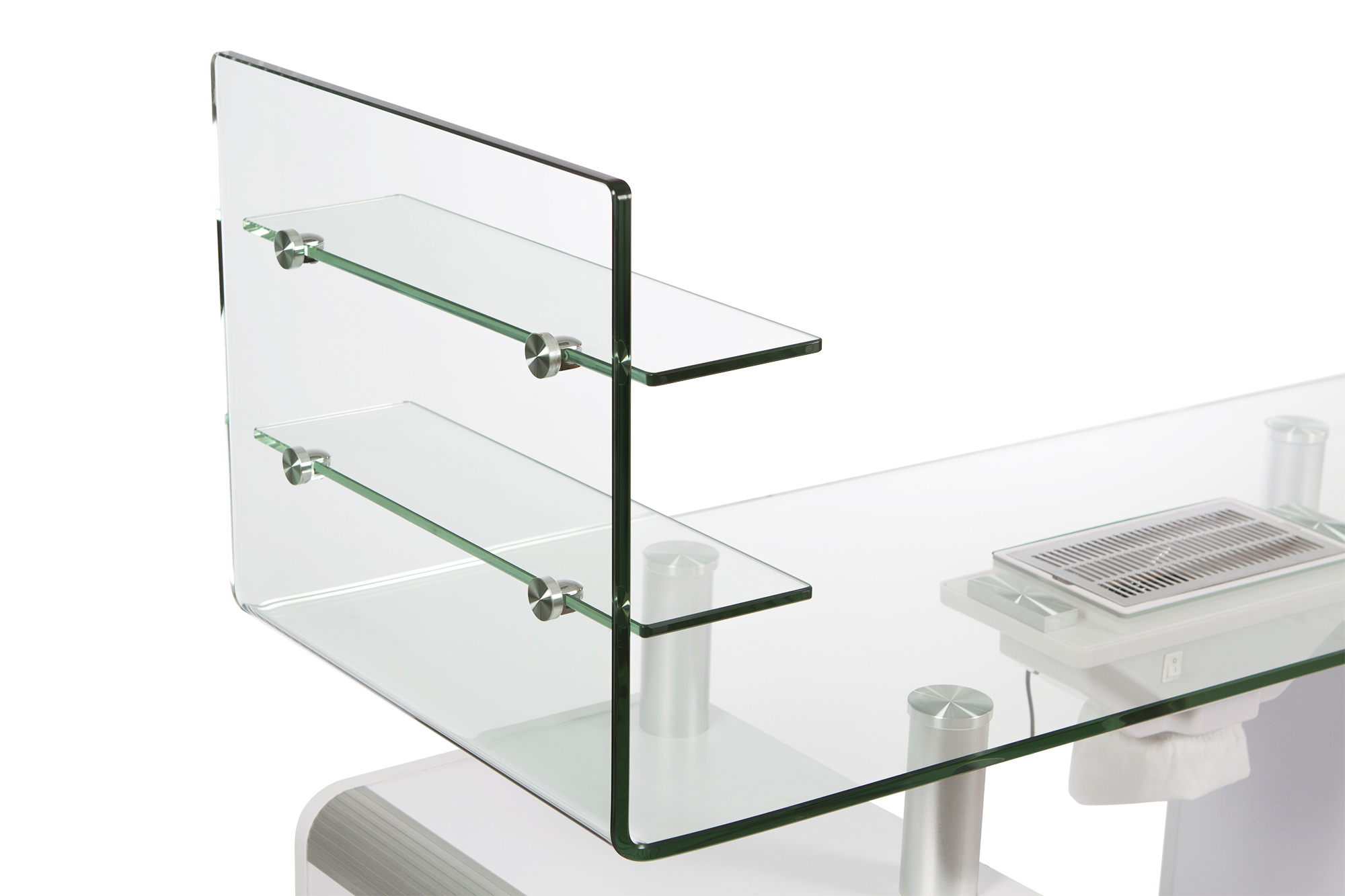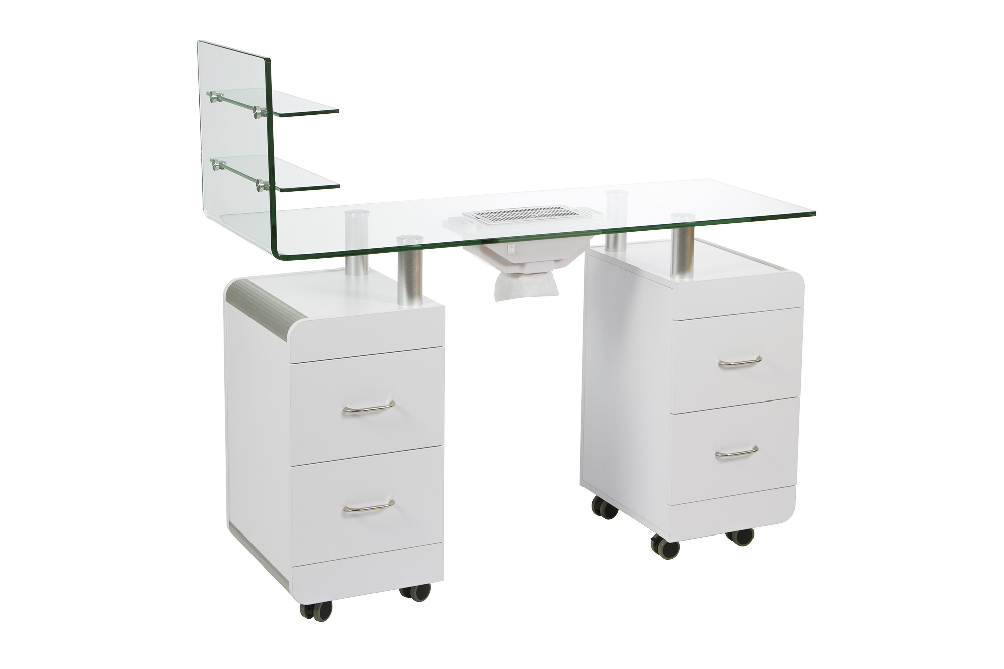 Είναι εξοπλισμένο με ειδικό απορροφητήρα σκόνης νυχιών, σακούλα συλλογής σκόνης και μαξιλάρι χεριών για άνεση κατά την διαδικασία του μανικιούρ.