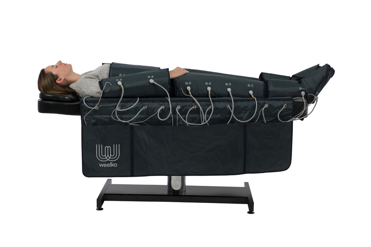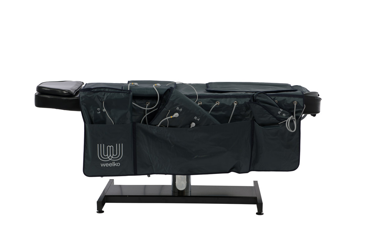 Ψηφιακή συσκευή με οθόνη αφής που συνδυάζει 2 θεραπείες ομορφιάς: θερμοθεραπεία και πρεσοθεραπεία. Κοστούμι που αποτελείται από μπότες, πόδια, κοιλιά, χέρια και κουβέρτα για την αποθήκευση των καλωδίων. Ιδανική για να βελτιώσει την κυκλοφορία και να διευκολύνει την απομάκρυνση του λίπους μέσω της ενεργοποίησης της λεμφικής παροχέτευσης, καθώς και της κυτταρικής οξυγόνωσης και χαλάρωσης των μυών.