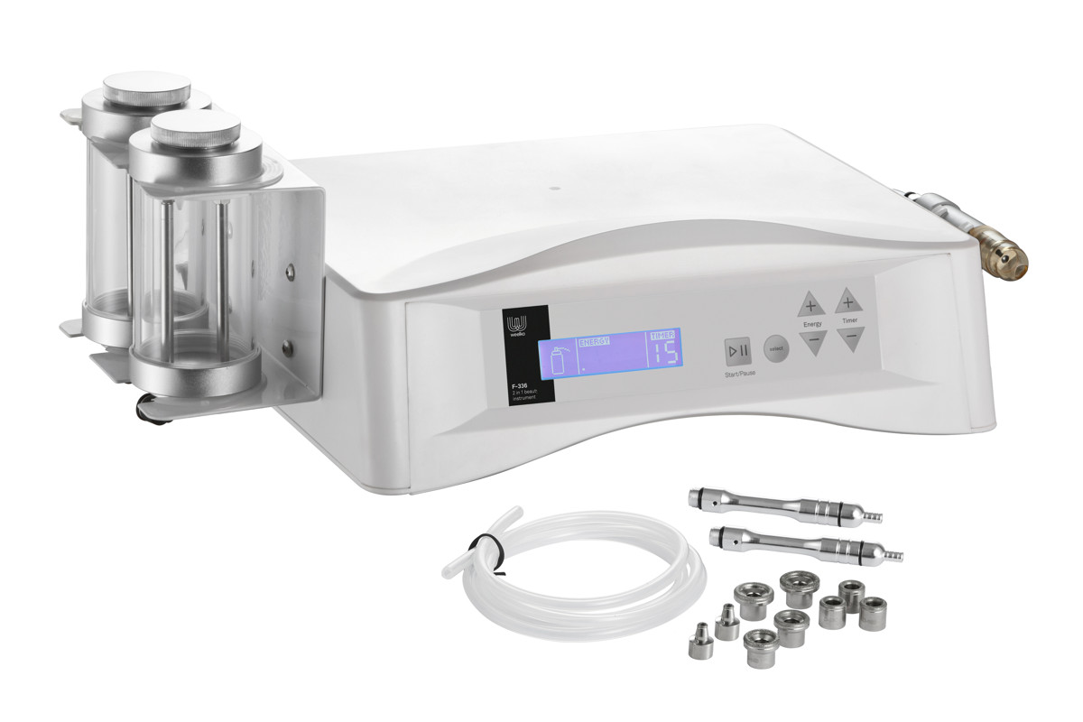 - Καθαριστής δέρματος: Χρησιμοποιεί υπερήχους για την απομάκρυνση των νεκρών κυττάρων και την ενίσχυση του τόνου του δέρματος. Η εφαρμογή γίνεται με τη σπάτουλα να είναι κεκλιμένη κατά 45 μοίρες, κινούμενη από κάτω προς τα πάνω για 10-15 λεπτά.