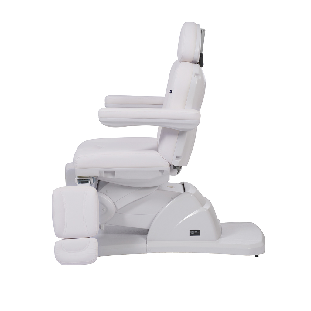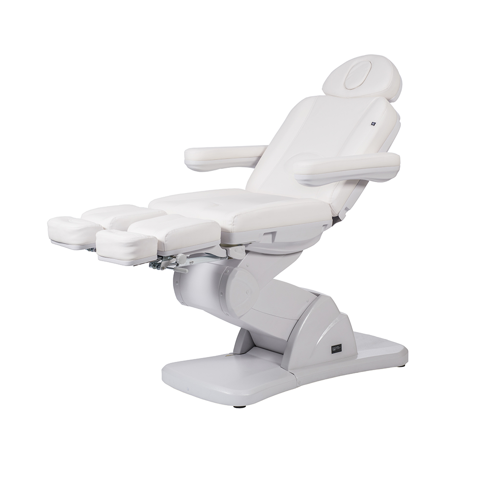 Το υποπόδιο περιστρέφεται έως 90°, ενώ το ύψος του ρυθμίζεται μέσω μηχανισμού αερίου. Διαθέτει υποβραχιόνια στήριξης και ρυθμιζόμενο προσκέφαλο με οπή αναπνοής